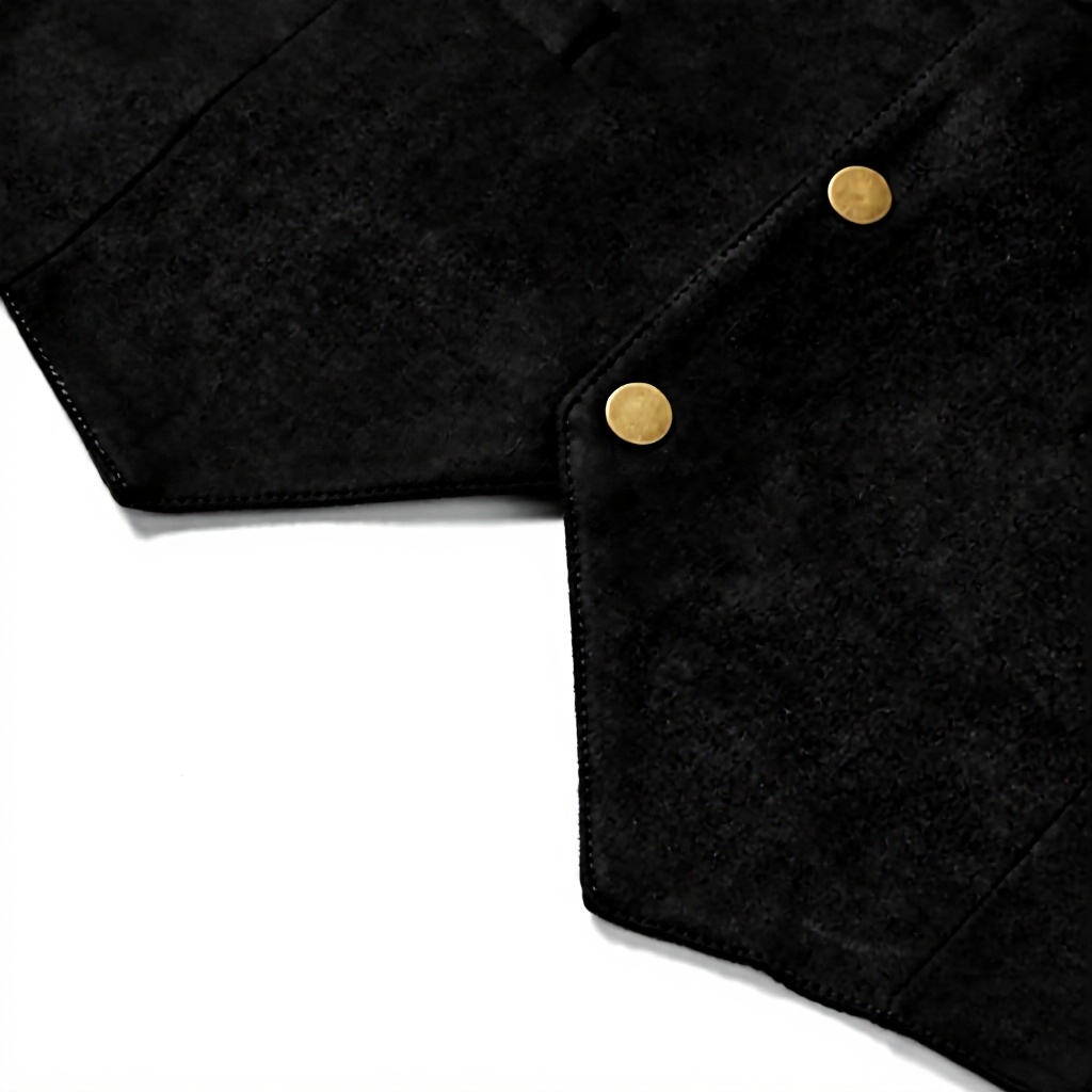 This Allthemen vest combines vintage aesthetics with modern functionality. Crafted from 100% polyester artificial suede, it offers a soft, comfortable feel and a durable construction. The design includes a single row of metal buttons and a V-neck collar that elegantly showcases inner shirts, while the adjustable metal belt loop at the back ensures a personalized fit.