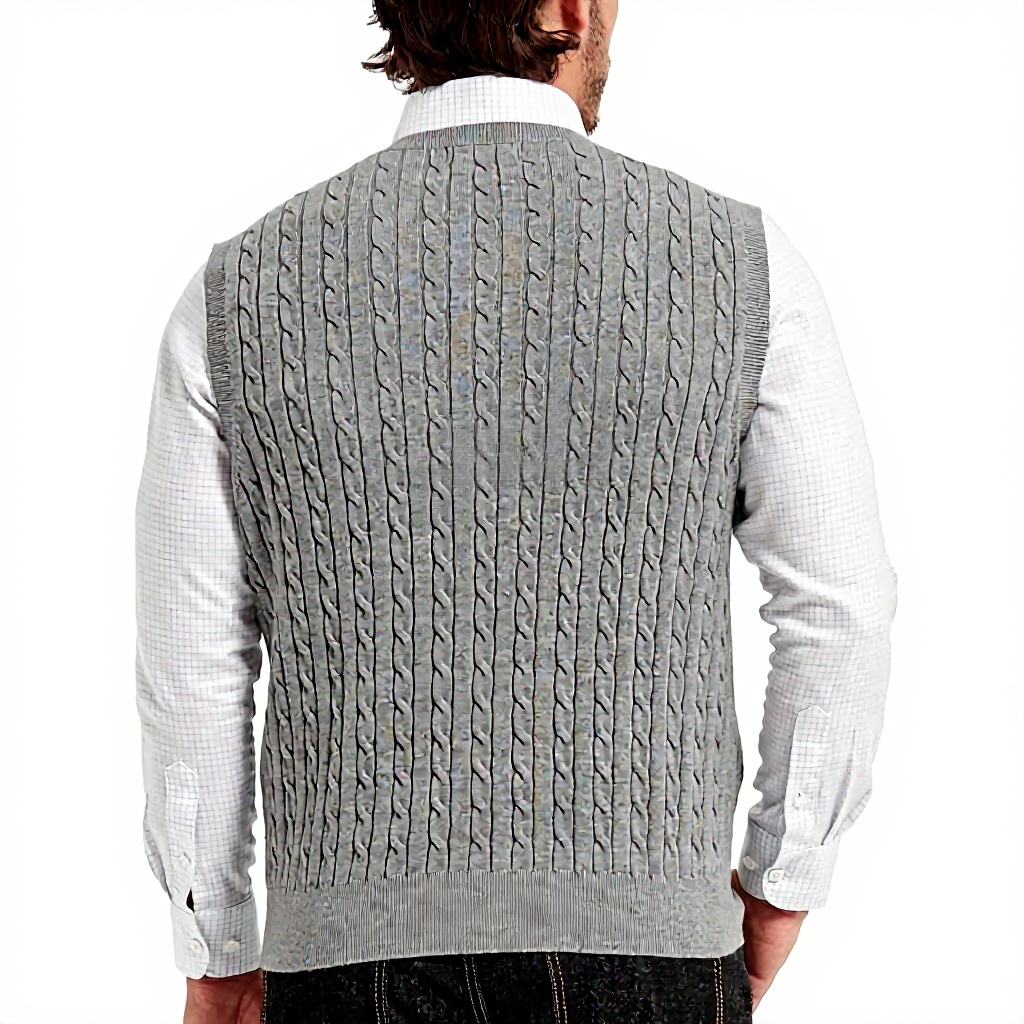 Gilet en coton pour homme avec col en V et tricot torsadé sans manches