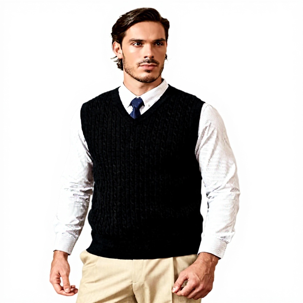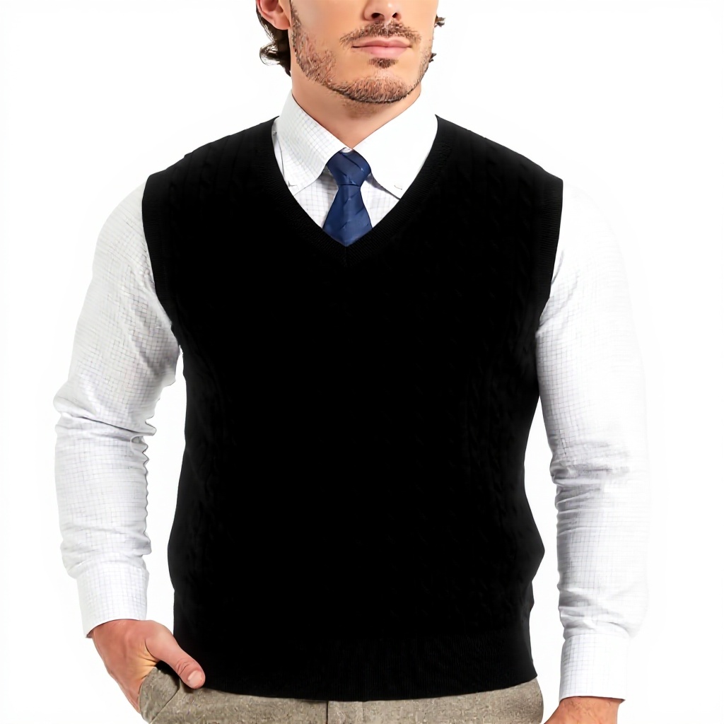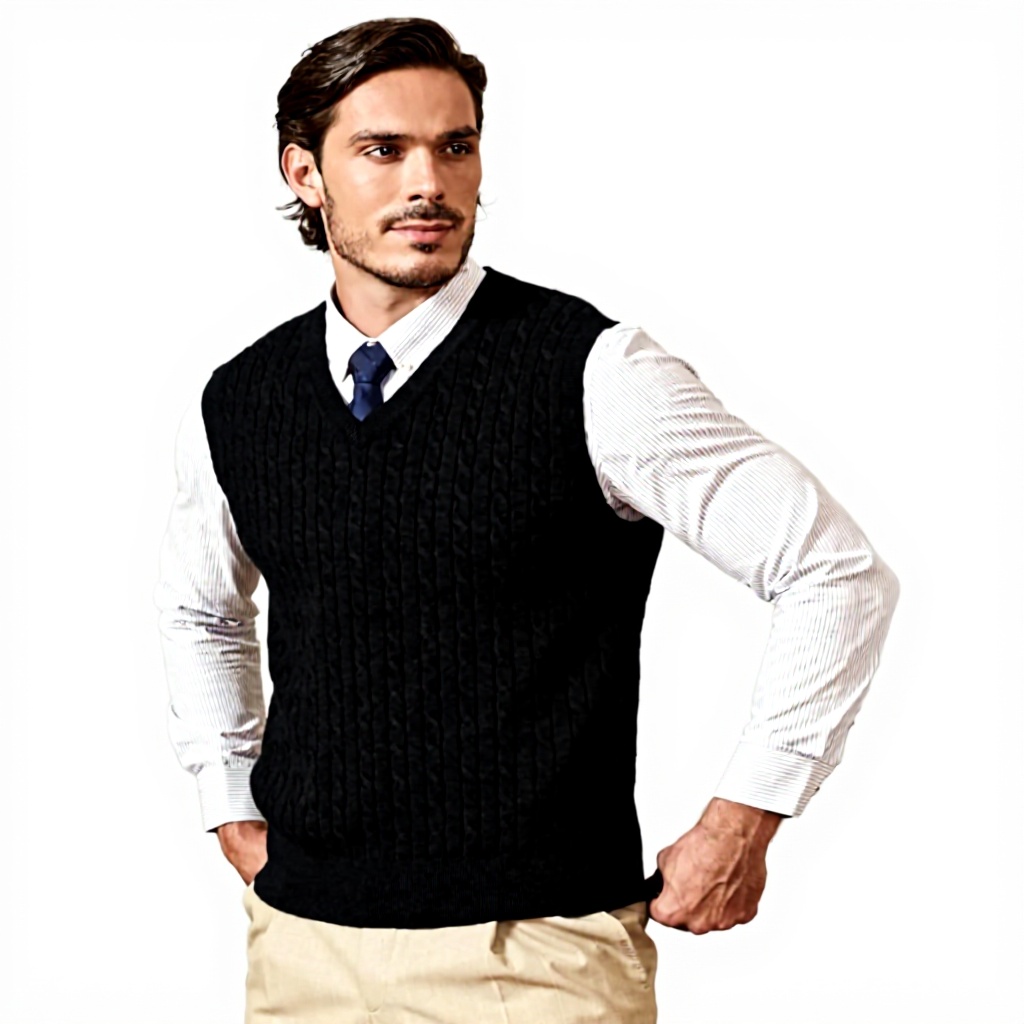Ce gilet pour homme allie élégance et fonctionnalité grâce à son tissu 100% coton doux et respirant. Le col en V classique et le motif de tricot torsadé offrent un style raffiné, tandis que l’absence de manches permet une superposition aisée avec d’autres vêtements.