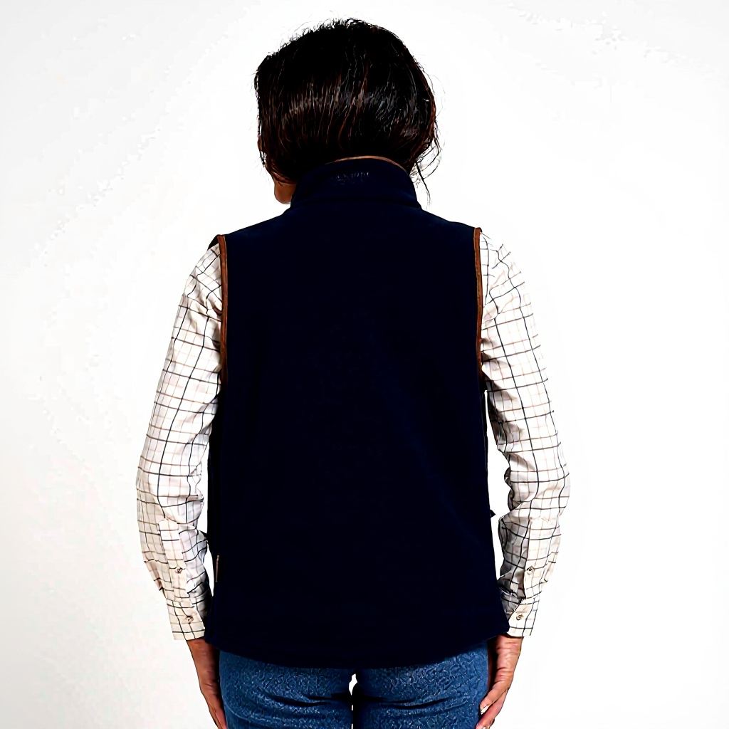 Le gilet est disponible en plusieurs tailles allant du XS au XXL, avec des options de couleur incluant bleu marine, olive foncé, bleu jean, rose et gris. La coupe est spécialement conçue pour s’adapter parfaitement à la morphologie féminine, assurant confort et liberté de mouvement. Le matériau polaire garantit une respirabilité tout en maintenant la chaleur corporelle.