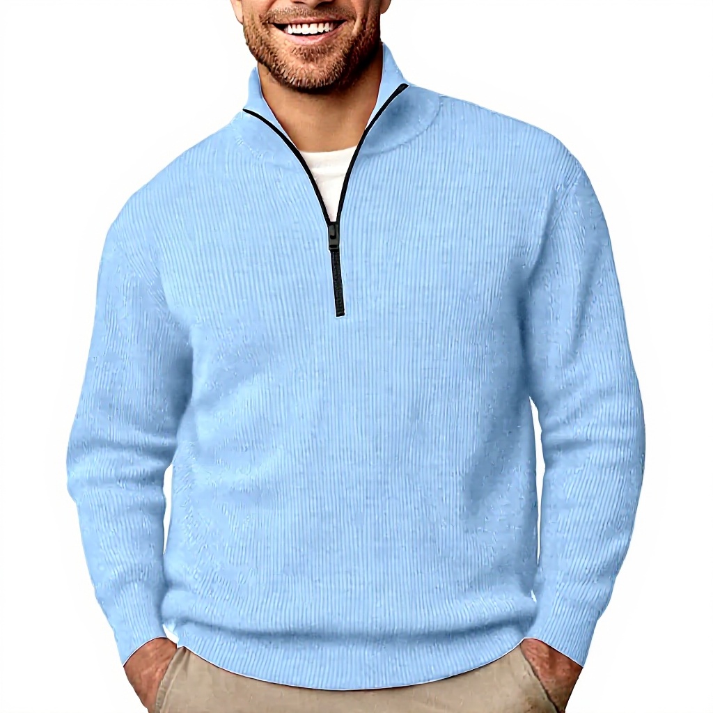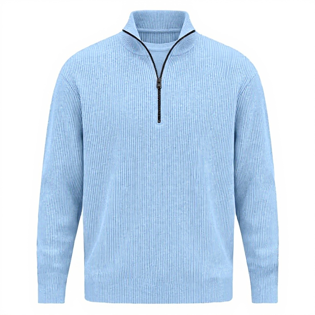 Ce pull est fabriqué en velours côtelé doux de qualité supérieure, offrant un confort exceptionnel, de la chaleur et un look texturé distinctif. Son col demi-zippé permet un ajustement réglable et une superposition aisée, tandis que le design sans capuche et le col montant créent une silhouette moderne et raffinée.